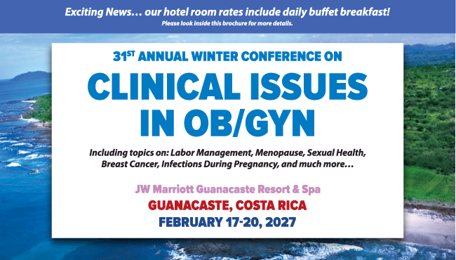 Our 31st Annual Winter Conference on Clinical Issues in OB/GYN is designed for physicians, certified nurse midwives, nurse practitioners, physician associates, nurses, and other allied healthcare professionals who manage preconception, pregnant, and postpartum patients. This educational activity aims to increase learner knowledge, improve the competence and performance of all attendees, and contribute to their ability to work together as part of a coordinated healthcare team.